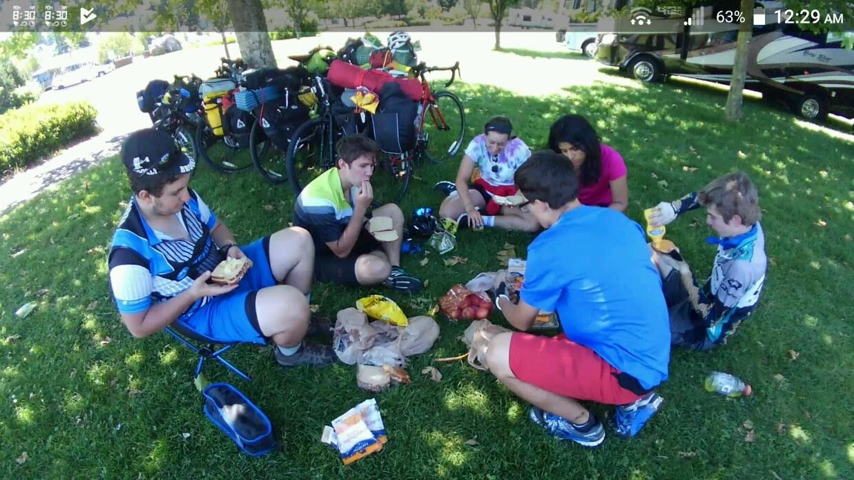 After waking up in Westport, OR bright and early this morning, the Across America Trekkers cycled 70 miles today, arriving in Portland! We stopped for lunch in the park along the way, and once we arrived in Portland, we enjoyed some delicious street food together and finished the day off with a stop at the famous Portland doughnut shop, Voo Doo Doughnuts. Yum!